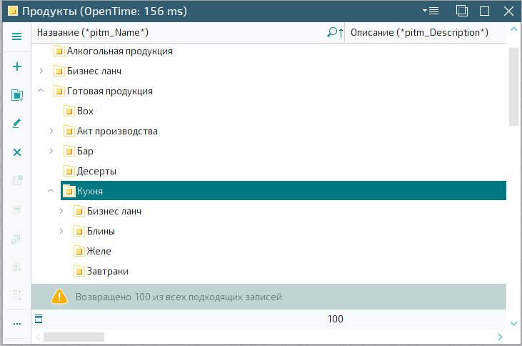 2)Продукты. Включили действие системного флага MaxLocalRowCount дял справочника «Продукты». Актуально при работе с очень большим справочником продуктов.